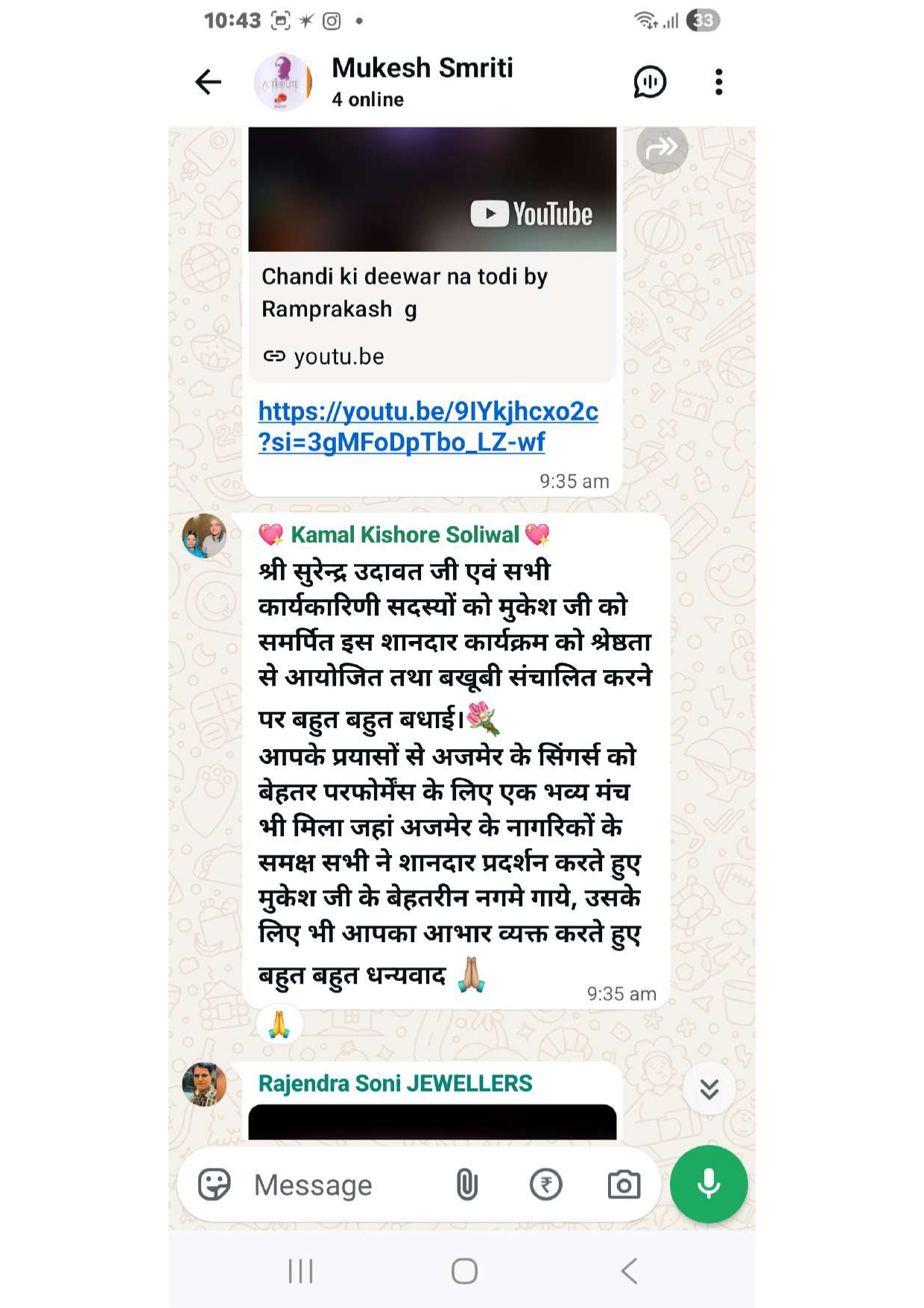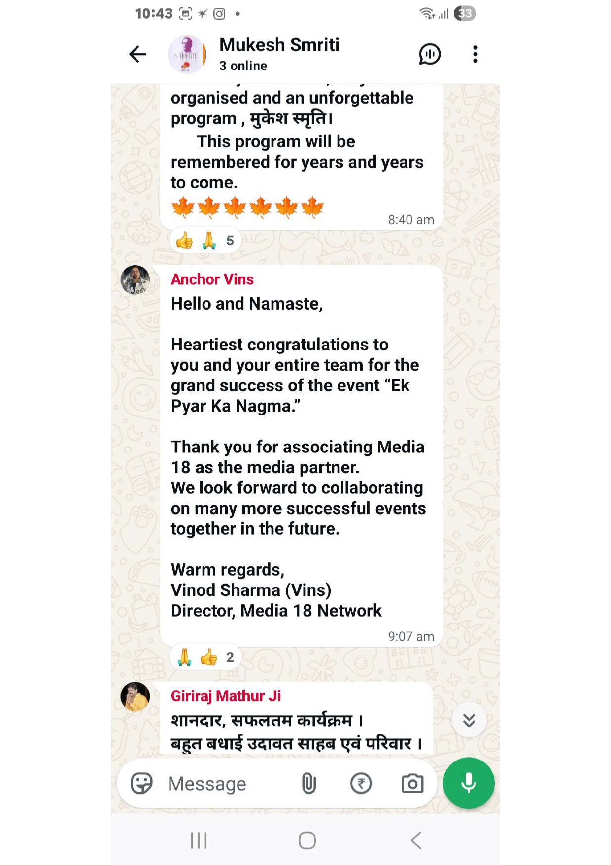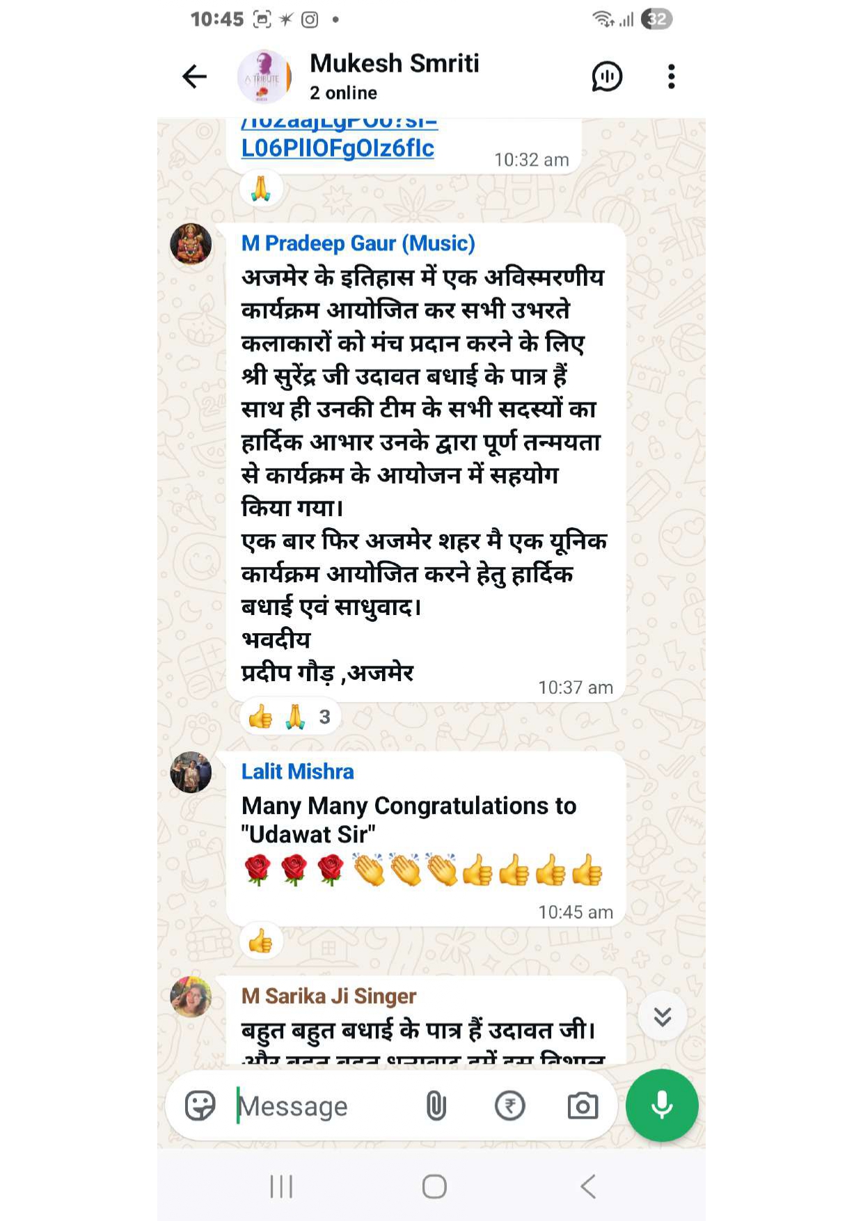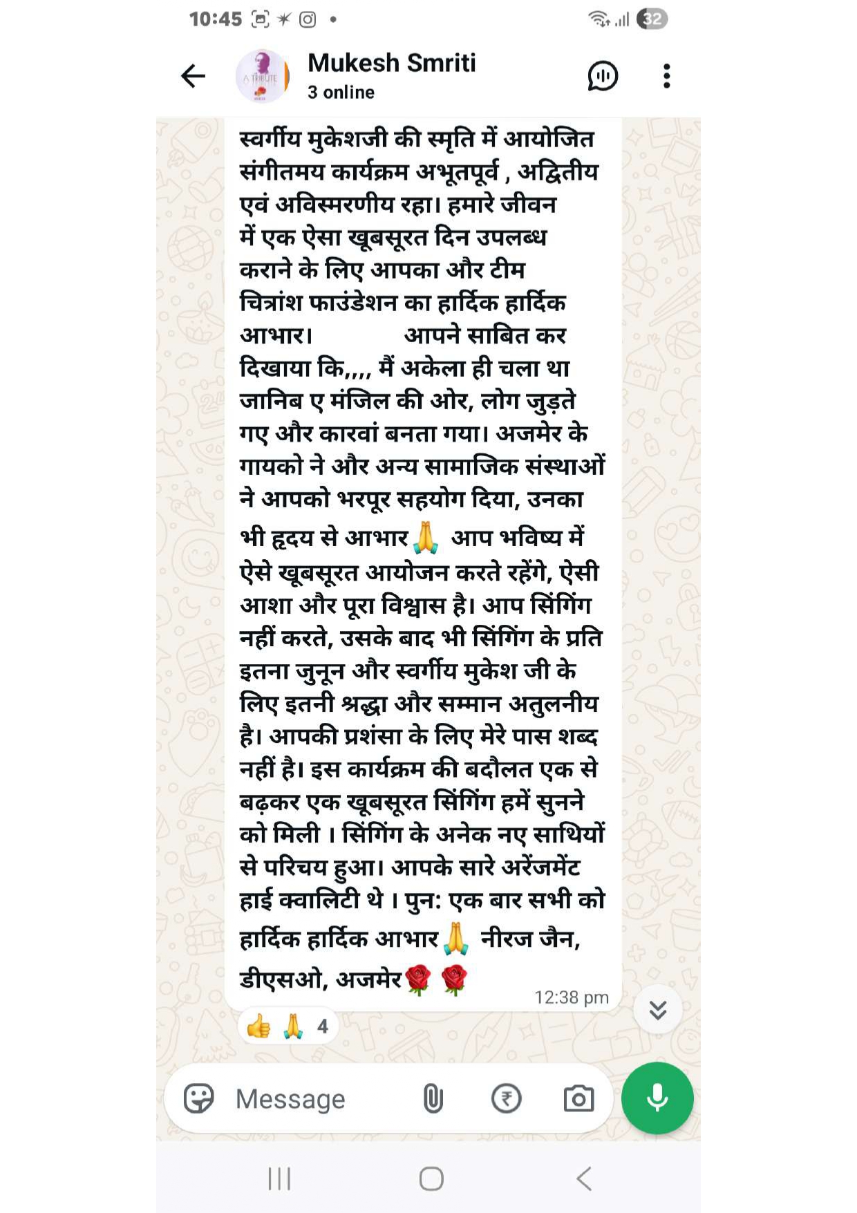 Over time, Ajaymeru Chitransh Cultural Foundation has been dedicated to preserving Indian heritage by hosting music, dance, and cultural events, while also taking active initiatives in social welfare activities. The foundation celebrates the rich legacy of Indian arts, music, and culture. Through events like “Ek Pyaar Ka Nagma Hai”, it connects generations and keeps alive the golden memories of cultural icons.